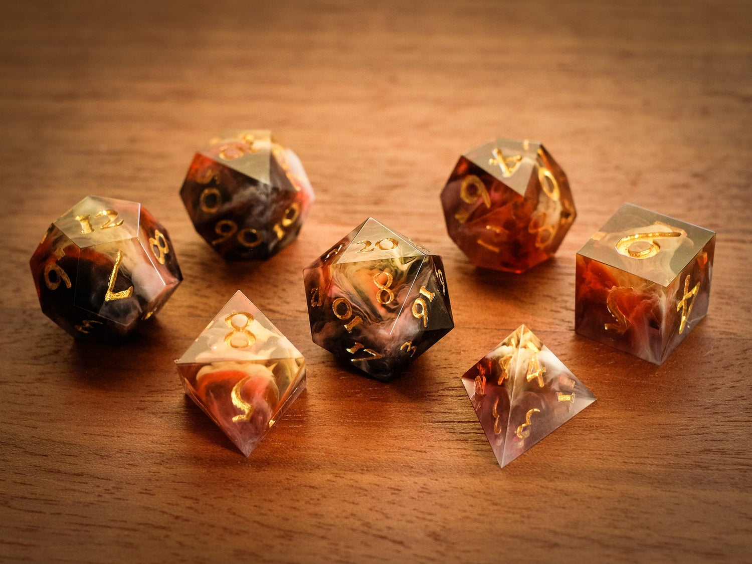Handcrafted wood dice trays, sharp edge resin dice, and premium tabletop gaming accessories.